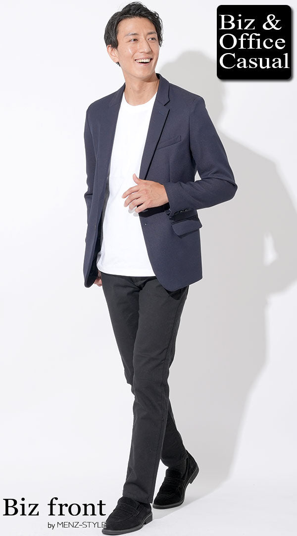 日本製 プレミアムネイビーチェック織柄テーラードジャケット Designed by Bizfront in TOKYO
