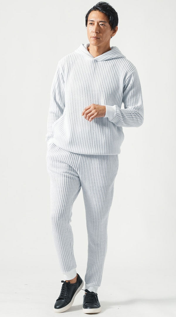 セットアップでも遊べる!ワッフル素材のグレートーンコーデ