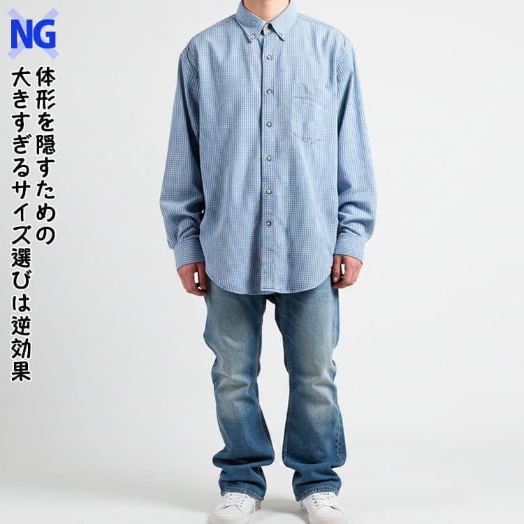 しかし、身幅が広いシャツやダボっとしたニットは、かえって体を大きく見せてしまいます。