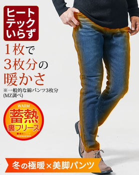 熱エネルギーを吸収して温度を上げてくれるフリース素材を使ったチノパンです。