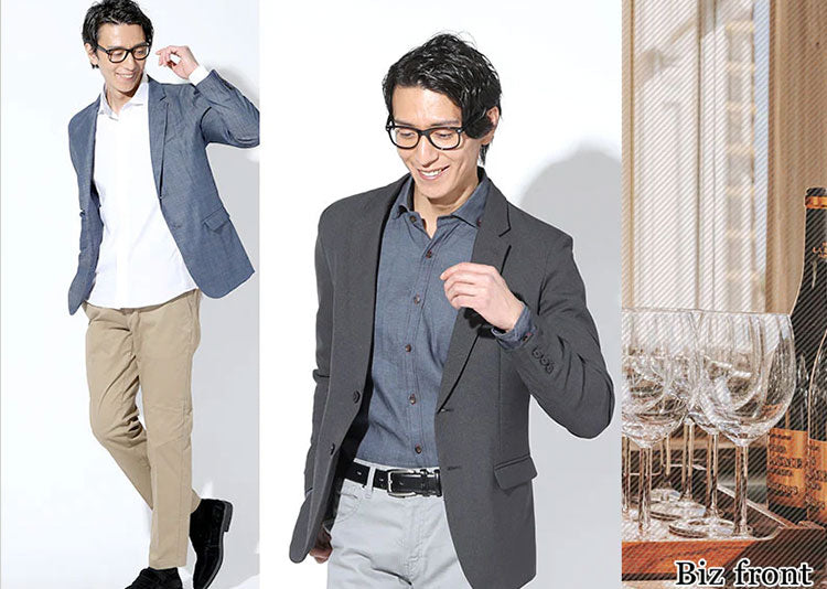 お腹まわり、肩幅、身長や細身など、体型に合ったジャケット選びをすることで、見た目の印象は大きく変わります。