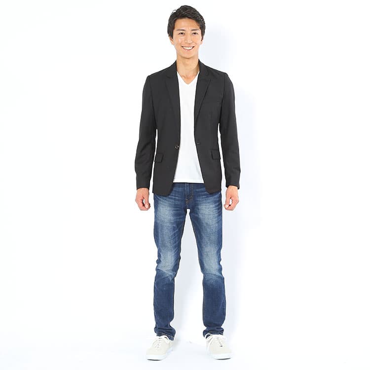細身体型をカバーするジャケットコーデ