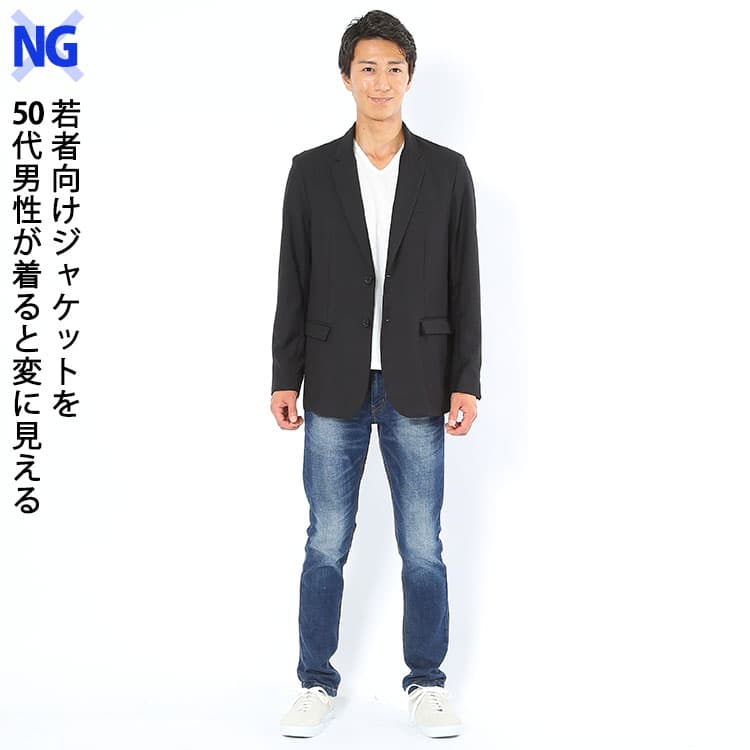 ■50代男性にふさわしくないジャケットを選ぶとダサく見えるコーデ