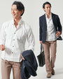 30代40代50代の男性におすすめのオフィスカジュアルジャケットは、職場でのきちんとした印象を保ちながら、今の体型に合う程よいゆとりが魅力です。昔のようなタイトなシルエットではなく、肩回りや胸元に適度な余裕を持たせた現代的なデザインが、大人の男性をより洗練されて見せてくれます。テーラードジャケットやニットジャケット、カジュアルブレザーなど、通勤はもちろん休日の家族との外出にも使えるきれいめアイテムを豊富に取り揃えており、妻や同僚からも「センスが良くなった」と好評をいただいています。ネイビーやグレー、ベージュといった定番カラーから、季節感のある素材まで、着回しの利く実用的なラインナップで、おしゃれに自信がない方でも安心してコーディネートを楽しめます。まずは気になるデザインから、今の自分にぴったりの一着を見つけてください。