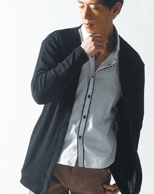 A. 長袖カーディガンは、ビジネスシーンからカジュアルな休日まで幅広く活用できます。通勤時には、シンプルな無地やケーブル編みを選ぶことで、きちんと感を演出しつつ、体型をさりげなくカバーできます。また、休日には質感のあるニット素材を羽織ることで、リラックスした印象を与えながらもおしゃれさを保てます。着丈はお尻が隠れる程度、裾幅は身体にフィットしすぎない程度のサイズ感を選ぶと、スタイル良く見せることができます。これにより、周囲からも「きちんとした大人の男性」として好印象を得られるでしょう。