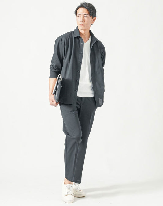 メンズスタイルがおすすめする夏の黒ジャケット!30代40代50代の男性に向けて、カジュアルシーンからきれいめスタイルまで幅広く活躍する夏用黒ジャケットをご紹介します。黒ジャケットは一着持っているだけで大人の品格を演出でき、職場でも好印象を与える万能アイテムです。七分袖や五分袖といった夏仕様のデザインは通気性に優れ、暑い季節でも快適な着心地を実現。程よいゆとりのあるシルエットは体型変化が気になる年代でも安心して着用でき、お腹周りを自然にカバーしてくれます。休日の家族とのお出かけや通勤スタイルにも重宝し、一枚羽織るだけできちんと感のある大人コーディネートが完成します。細身からゆったりシルエットまで豊富なバリエーションと、年代別のコーディネート例も多数ご用意していますので、まずは気になるデザインからチェックしてみてください。