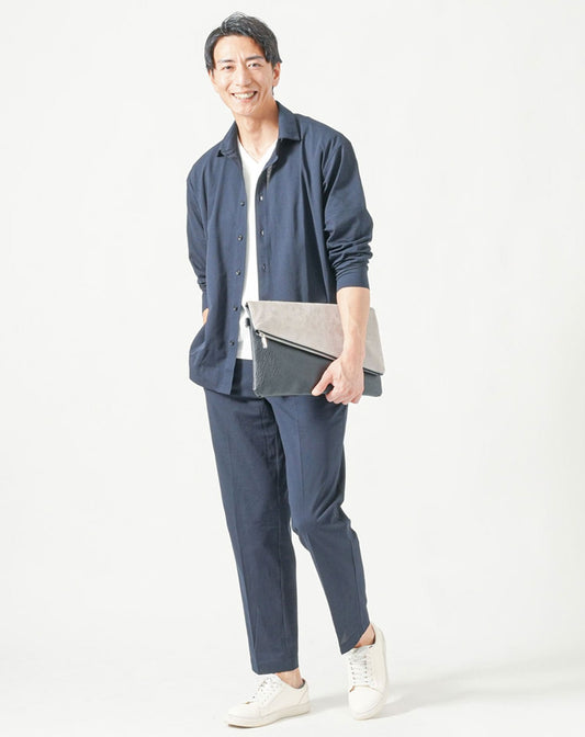 A. 大人男性は程よいゆとりのあるシルエットが似合います。肩回りや二の腕に余裕を持たせることで、動きやすく、体型の変化も自然にカバーできます。スリムフィットだと体にフィットし過ぎるため、少し余裕を持たせたデザインが理想です。特に、ノーカラージャケットやシャツセットアップは、カジュアルにもビジネスにも適応できるためおすすめです。