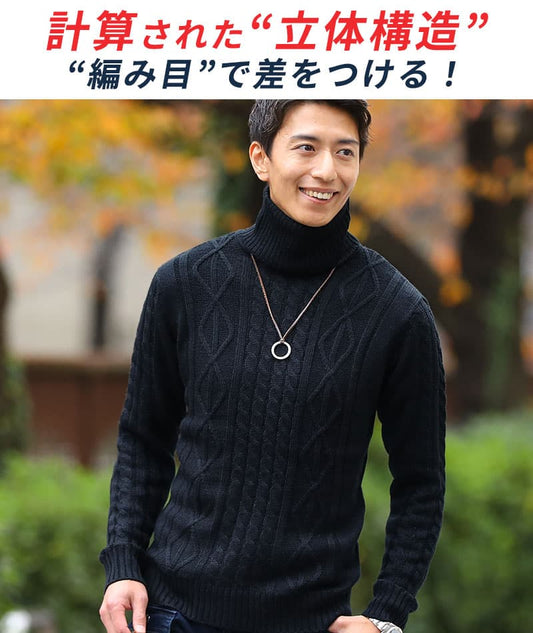 30代40代50代のメンズタートルネックニットセーターは、大人の男性にとって「きちんと感」と「こなれ感」を両立できる頼れるアイテムです。以前は細身のタイトなシルエットが主流でしたが、今は程よいゆとりのあるシルエットが大人の体型に自然に馴染み、肩回りや胸元を上品に見せてくれます。黒やネイビー、グレー、白といった定番カラーなら、通勤スタイルにジャケットを羽織っても、休日のカジュアルコーデでも違和感なく着回せるため、職場の同僚や奥様からも「センスが良い」と好印象を持たれるでしょう。タートルネックの上品な襟元は顔周りをすっきりと見せ、秋冬の重ね着スタイルでも一枚でもサマになる万能さが魅力です。シンプルながらもどこかおしゃれで洗練された印象を与えるタートルネックセーターを、まずは気になるカラーやデザインからチェックしてみてください。