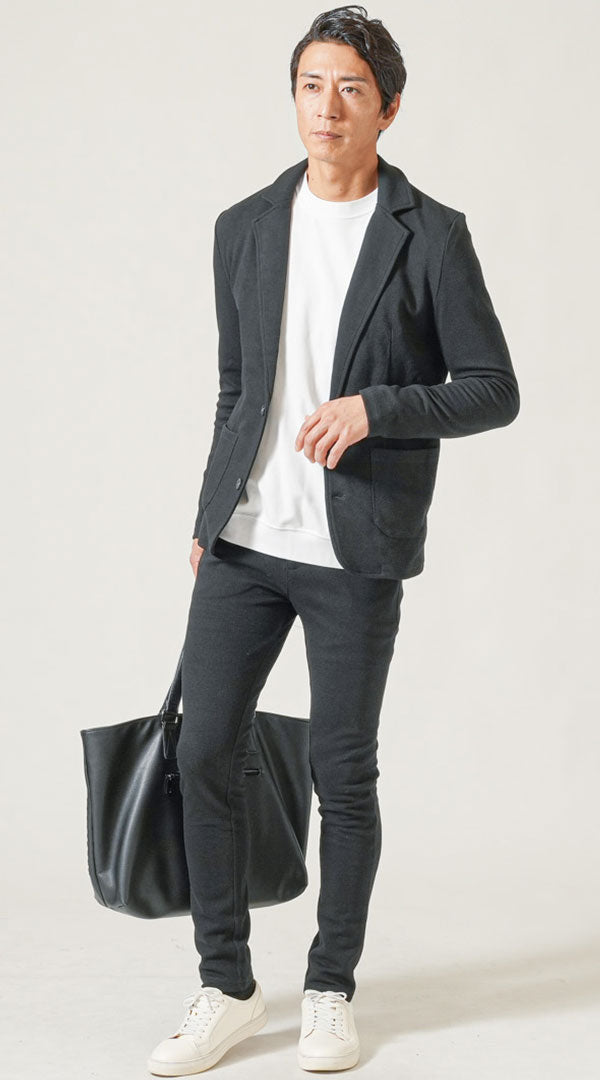 30代40代50代の男性に選ばれている黒セットアップは、春夏秋冬どの季節でも大人の品格を演出できる万能アイテムです。昔のような細身シルエットではなく、今は程よいゆとりのあるシルエットが主流で、お腹周りや肩回りに自然なゆとりがあるため体型変化が気になる年代でも安心して着こなせます。ビジネスシーンはもちろん、休日の家族との外出や通勤の行き帰りでも、きちんと感のある黒セットアップなら職場の同僚や家族からも好印象を持たれるでしょう。ジャケットとパンツの組み合わせで統一感が生まれ、インナーシャツやカットソーを変えるだけで季節感や着回しも簡単に楽しめます。セットアップ初心者の方でも失敗しにくく、大人の男性らしいきれいめカジュアルスタイルが完成するのが魅力です。まずは気になるデザインやシルエットから、あなたに合う黒セットアップを見つけてみてください。