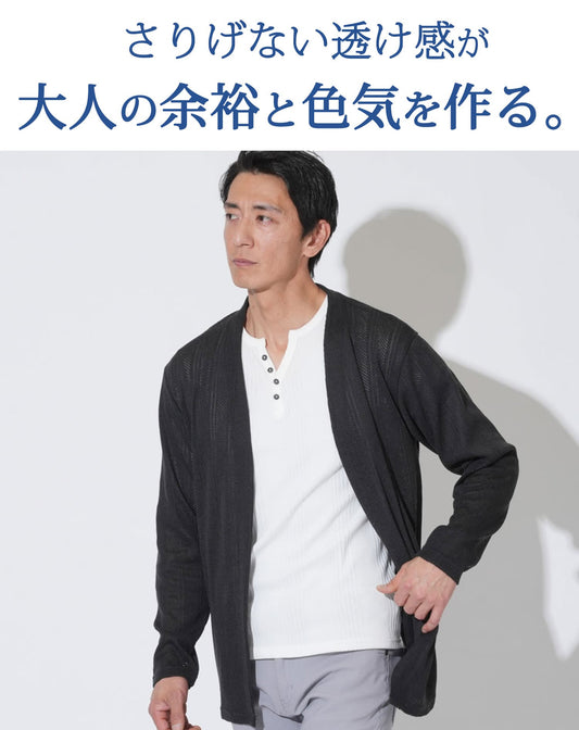 バイアスジャガード長袖フード付きボタンレスロングフーディガン