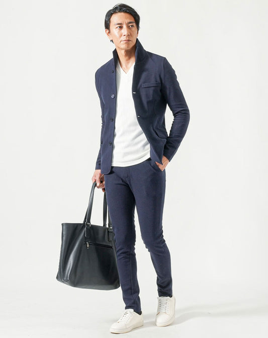 セットアップ カルゼ織りイタリアンスタンドカラージャケット×テーパードパンツ