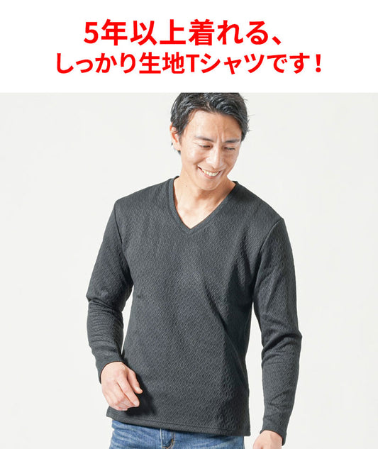 ダイヤジャガード長袖ストレッチVネックTシャツ