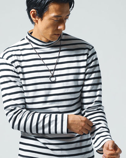首元はハイネック(モックネック)なので、肌寒さの残る春にピッタリなTシャツです。