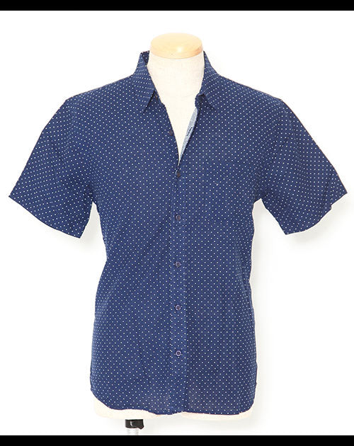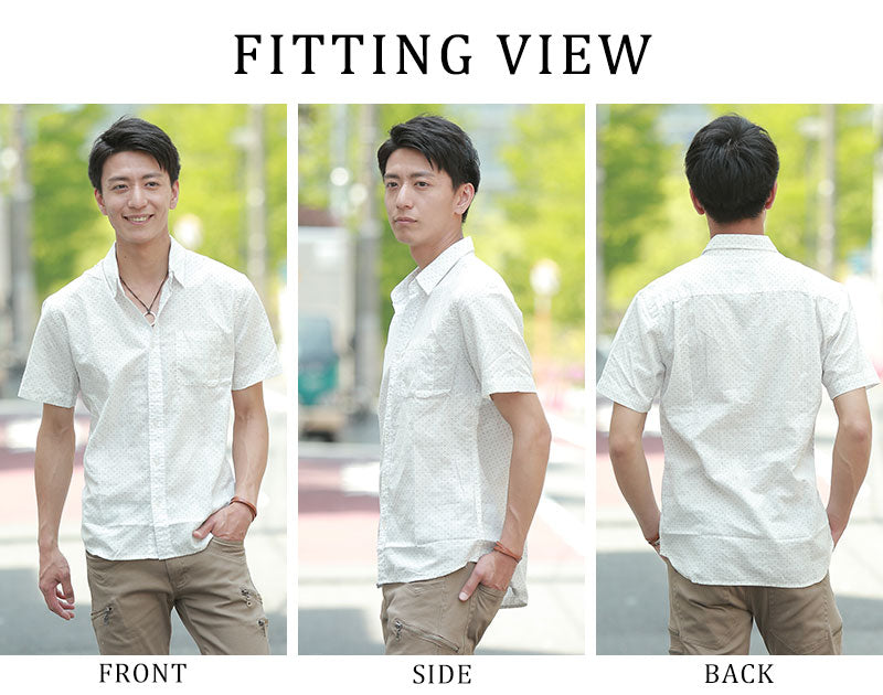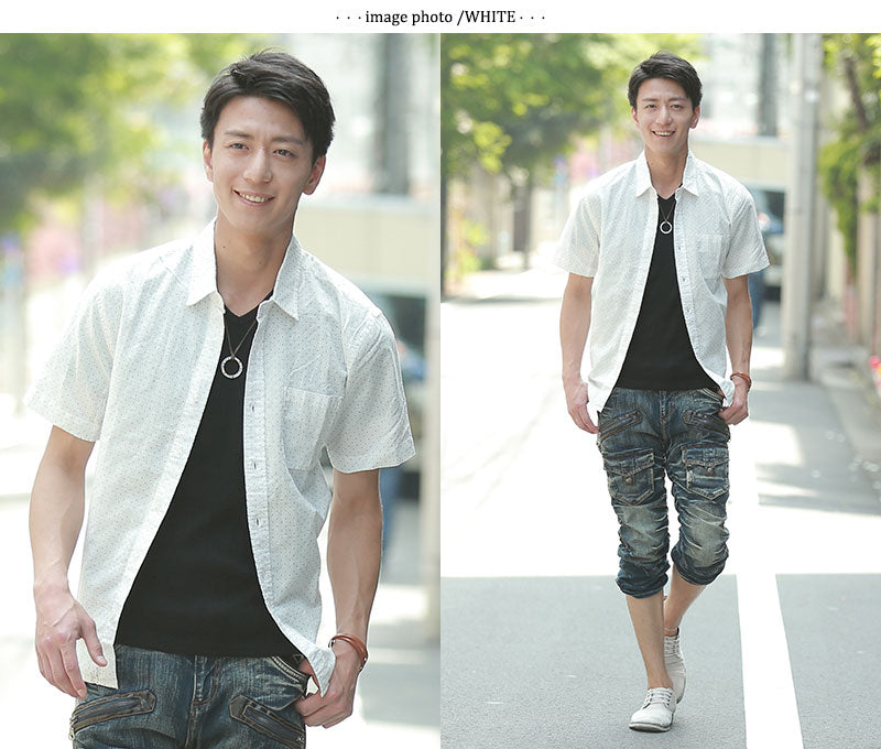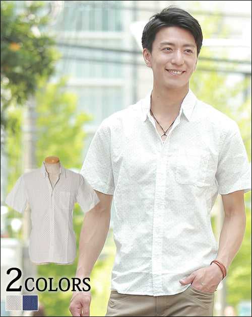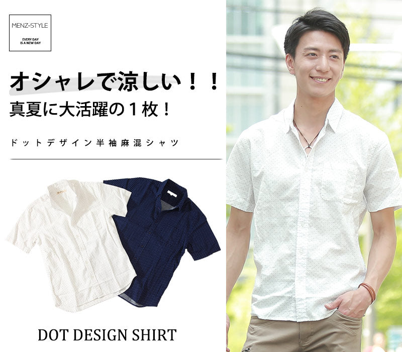 【オシャレで涼しい!!真夏に大活躍の1枚!】ドットデザイン半袖麻混シャツ