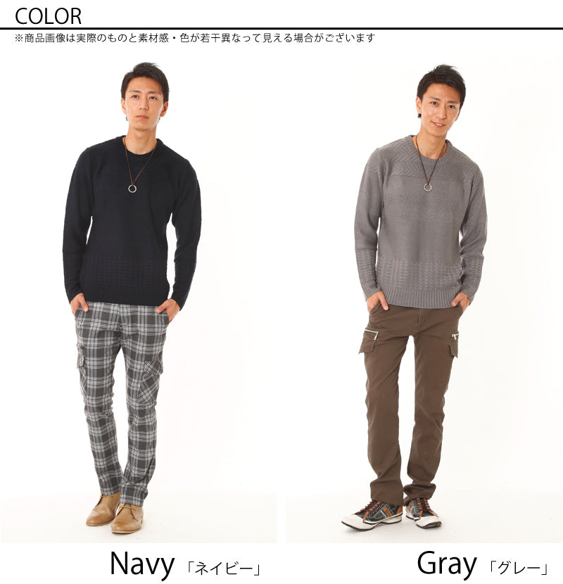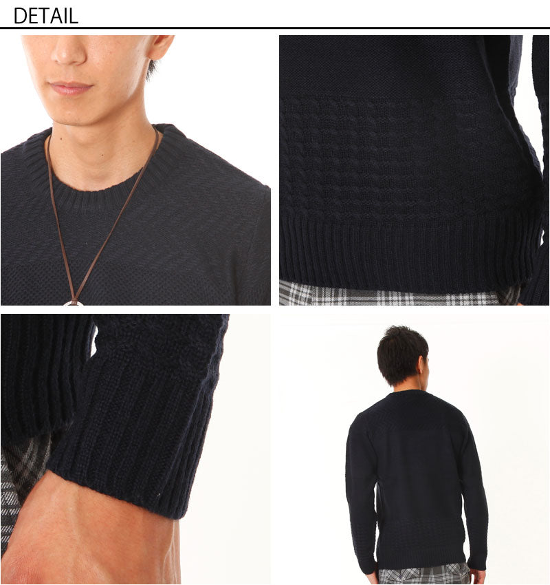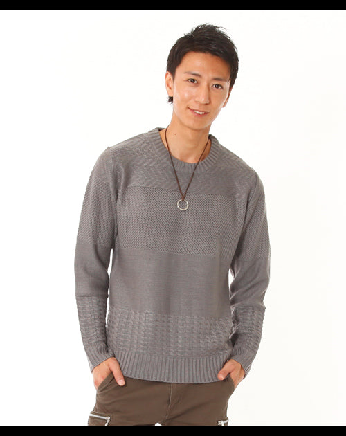 ケーブル編み切り替えニットソー
