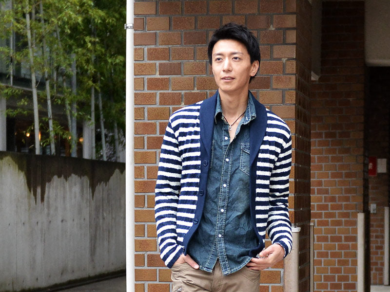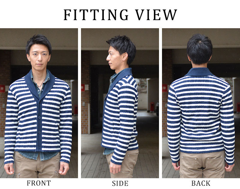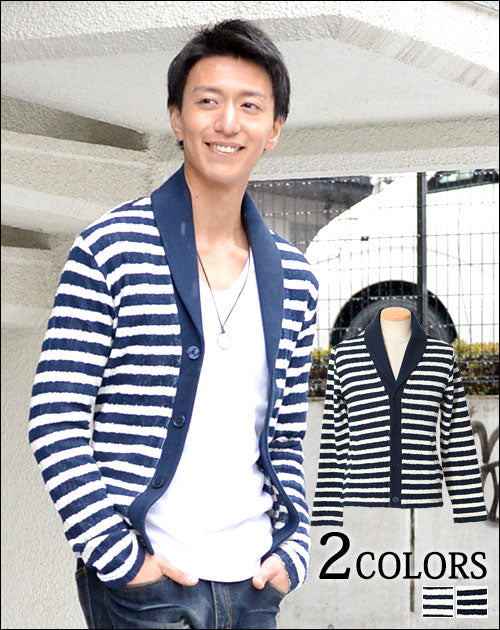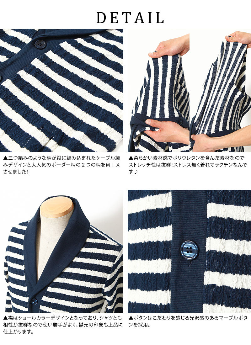 品なカジュアルスタイル】ボーダーケーブル編みストレッチカーディガン