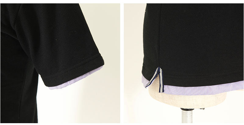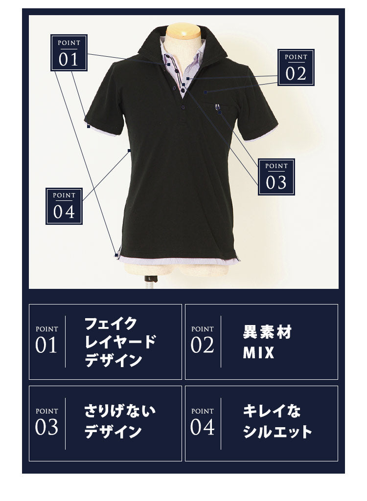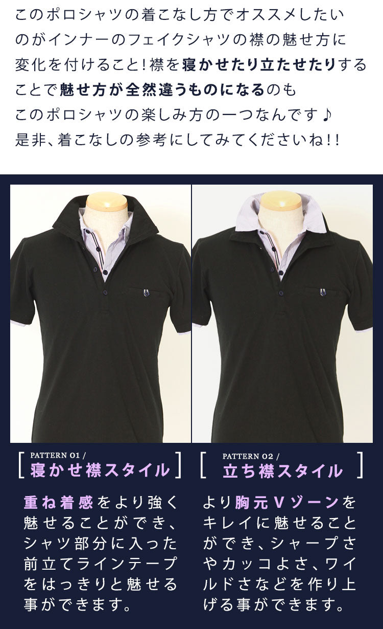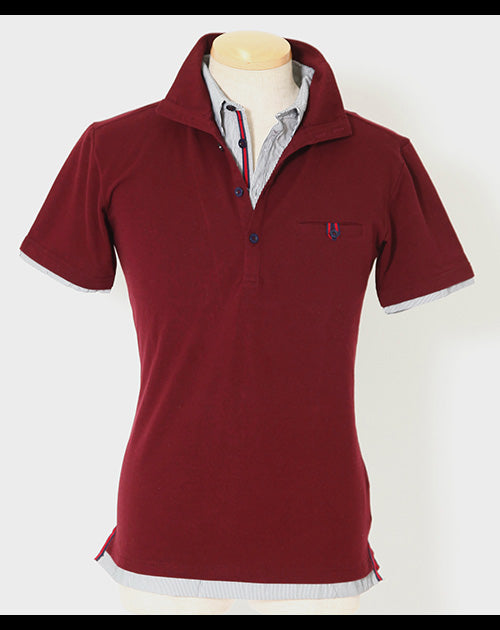 ポロシャツ生地の中にシャツ生地を重ね着のように