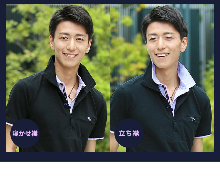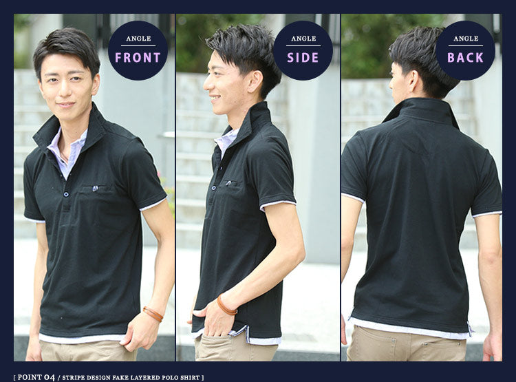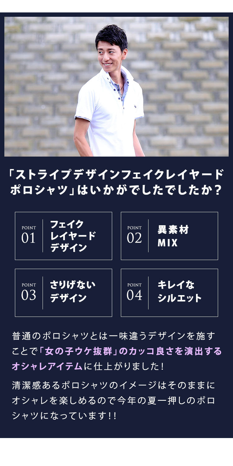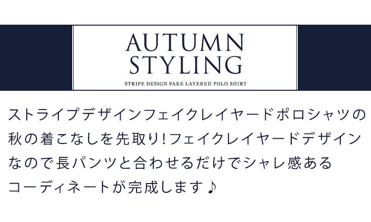 ポロシャツとストライプシャツを重ね着しているような襟のデザイン!