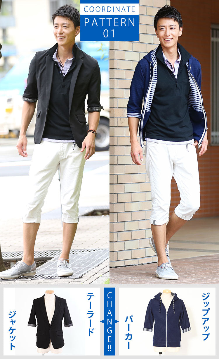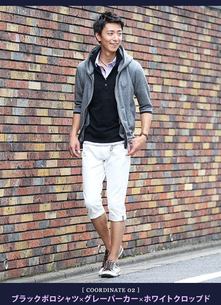 パーカーを羽織る事でよりレイヤード感を強める事が出来ます!そうすることでシャレ感が3割増しし、オシャレなコーディネートに♪ホワイトパンツと組み合わせて爽やかにまとめました。