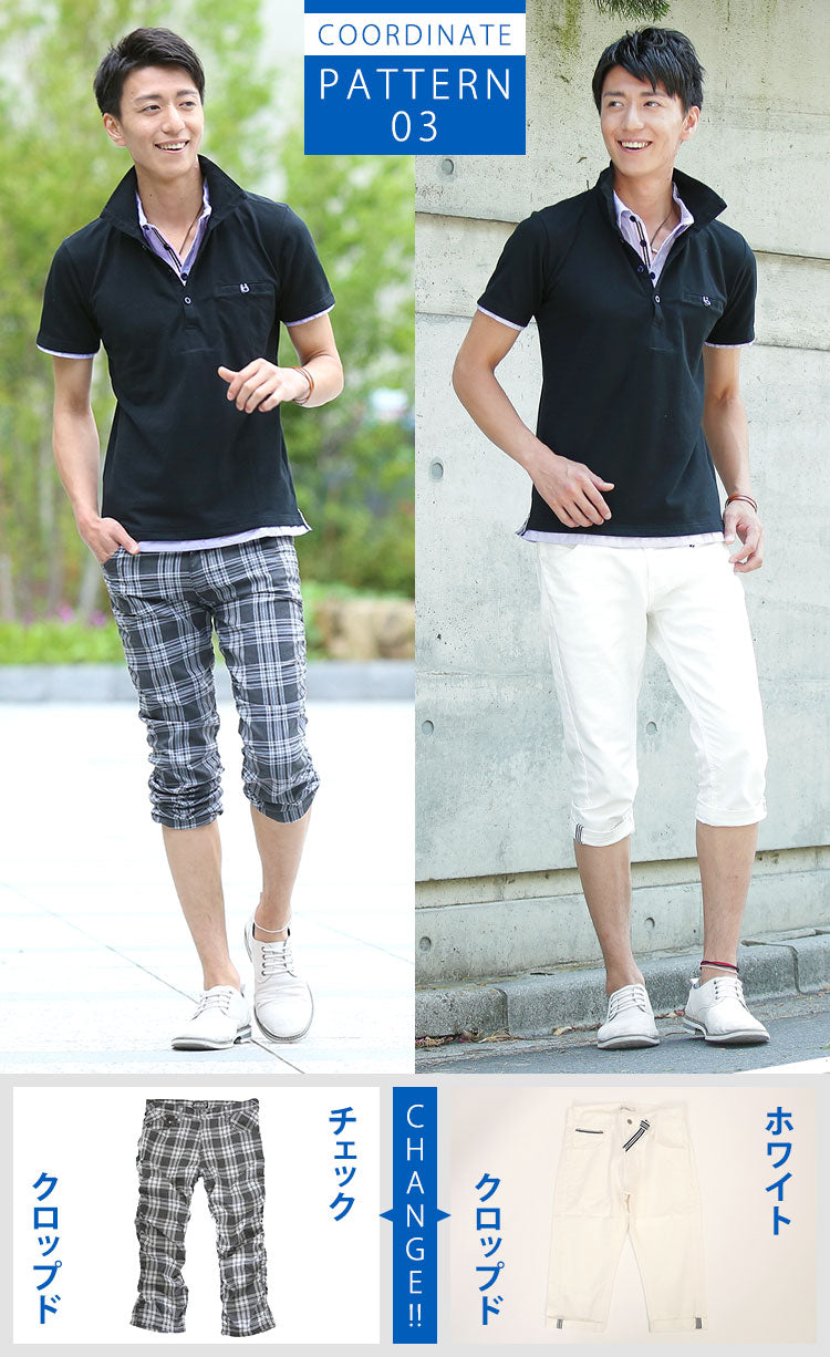 チェッククロップドからホワイトクロップドにチェンジ!そうすることで爽やかさが3割増しして好感度が高いコーディネートが完成します!パンツの色一つでガラッと雰囲気が変わるんです!また、ホワイトはトレンドカラーなのでオシャレに見られるところもポイントです♪