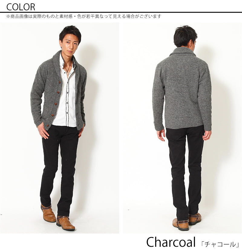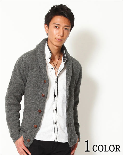 • くるみボタンショールカラーカーディガン