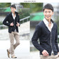 白シャツと合わせて上品な雰囲気を演出! その上からコートを羽織りデキる男の雰囲気に!! 同系色のアウターを羽織っても、パイピングデザインがあることで着こなしにアクセントが付き、コジャレ感のある着こなしにしてくれます♪
