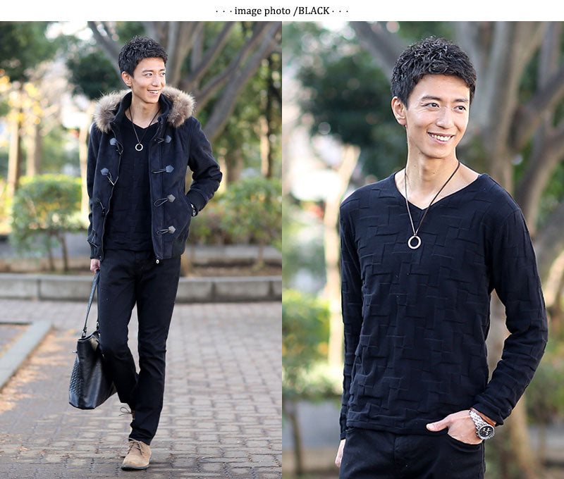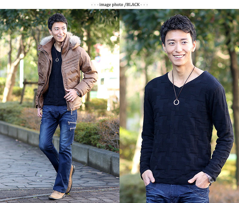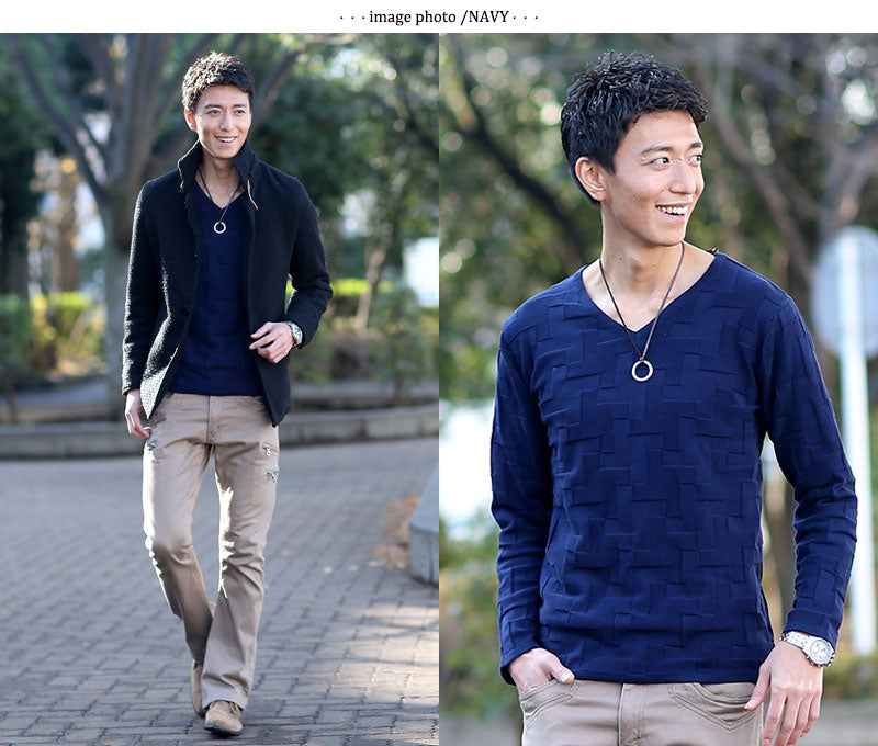 パッと見は無地にも見えるけど、うっすらとボディと同色で仕上げた「シャドー千鳥柄」がオシャレなニットソーです!