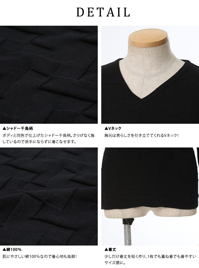 【シンプルだけど“いつもとはちょっと違う”オシャレが楽しめる♪ 】シャドー千鳥柄Vネックニットソー