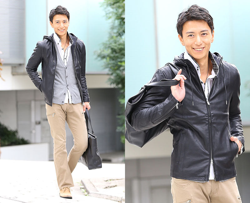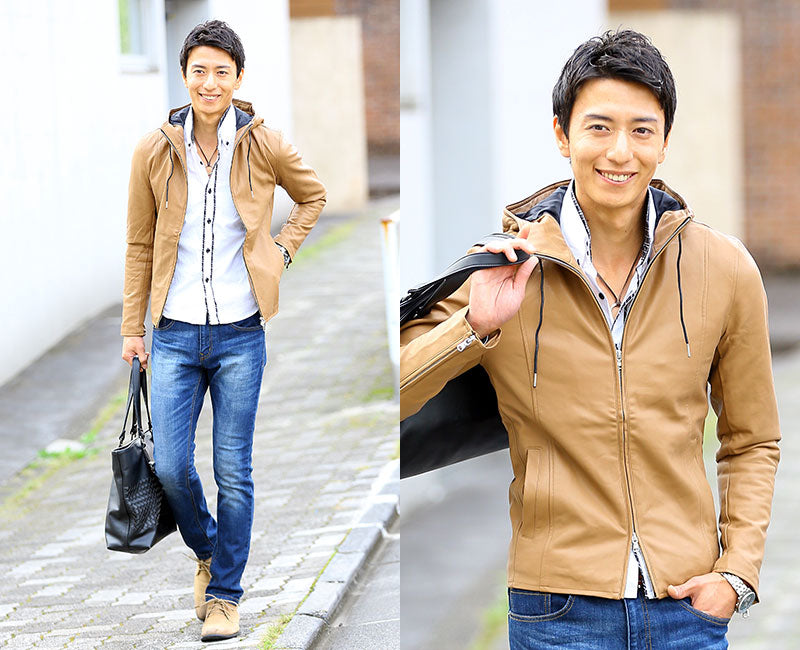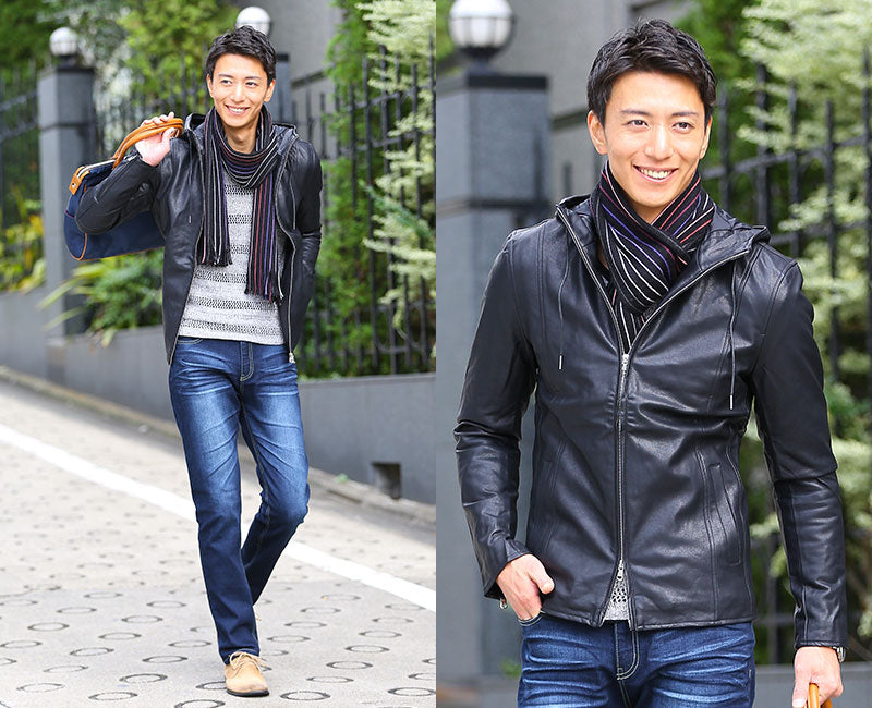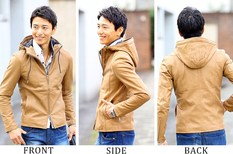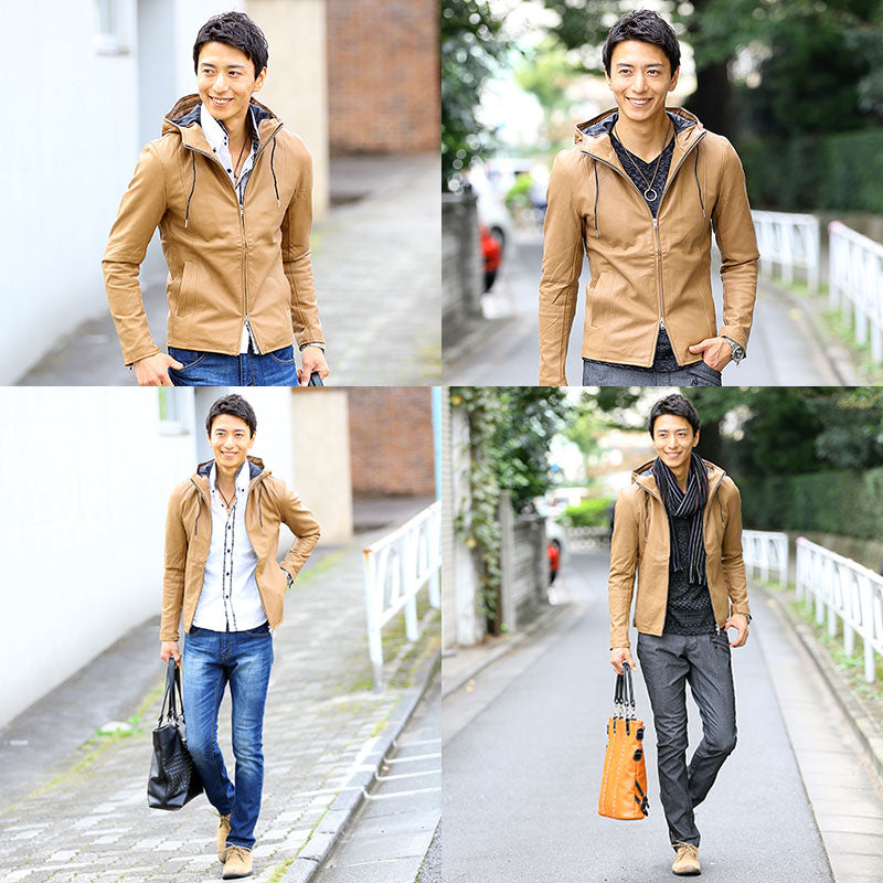 男らしさ抜群のライダースの形にフードをつけることカジュアル感もプラスしたこの1枚!堅過ぎず緩すぎない絶妙な大人の余裕感を演出してくれます!