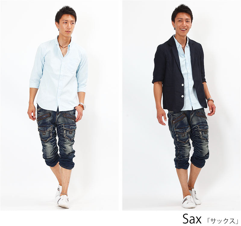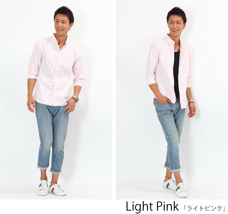 カラーステッチ7分袖シャツ