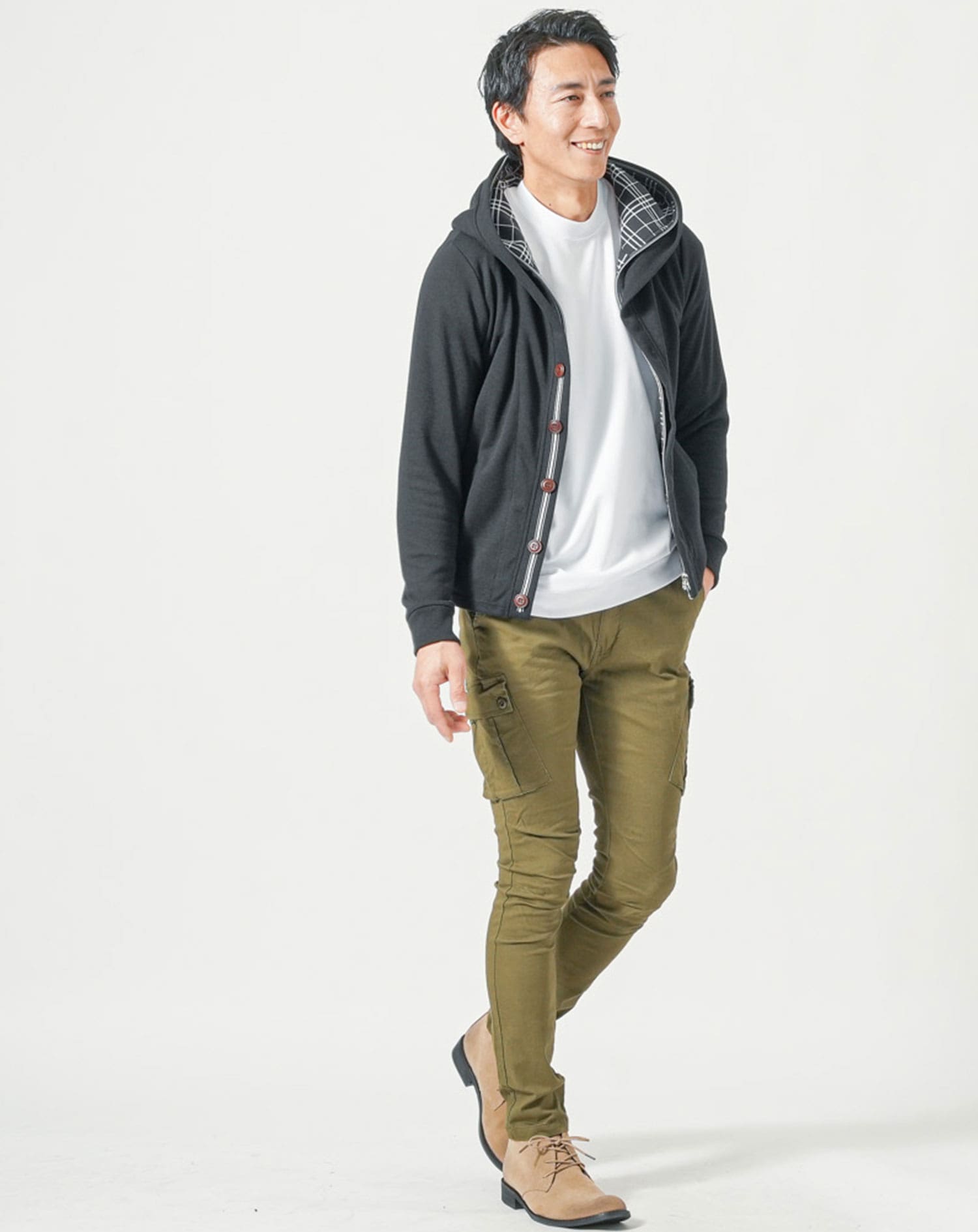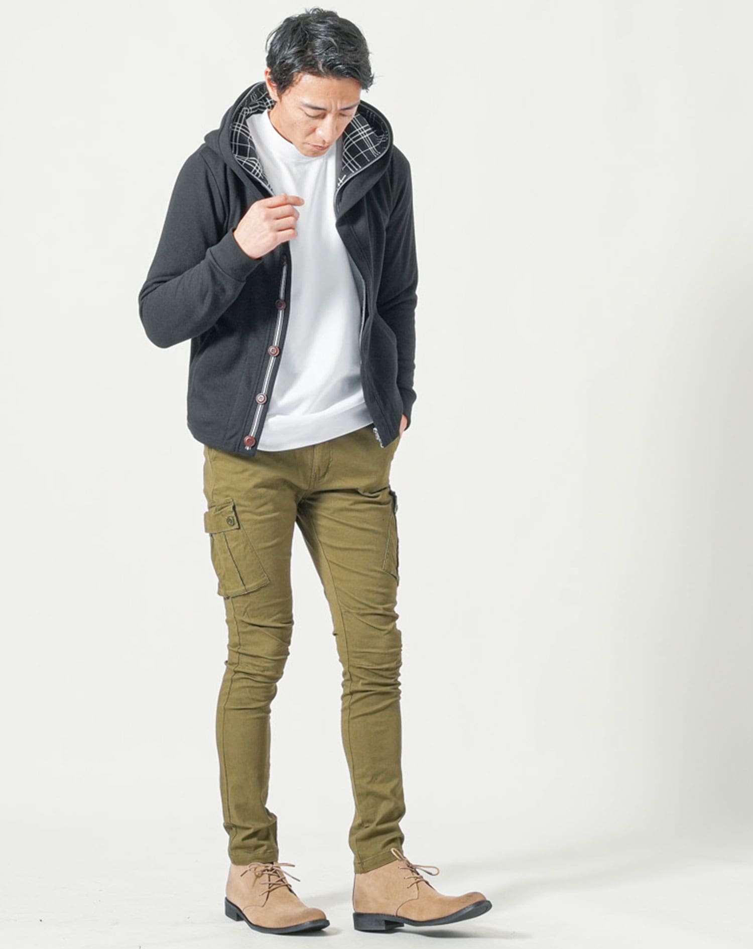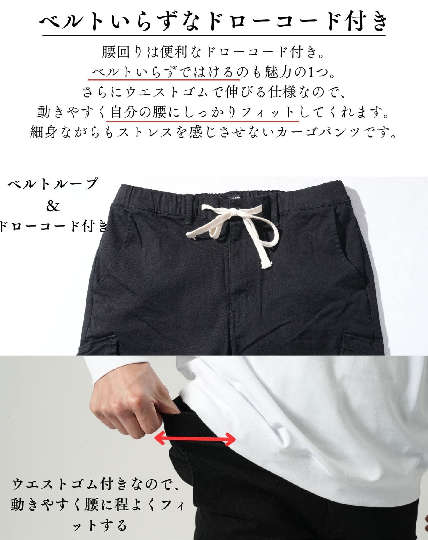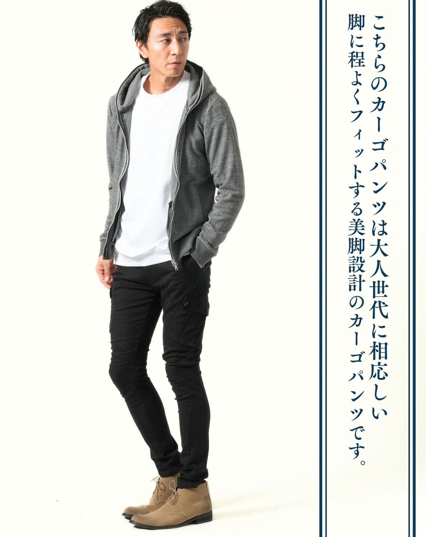 大人世代にぴったりな細身のカーゴパンツとなります。