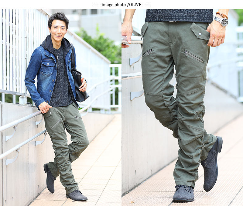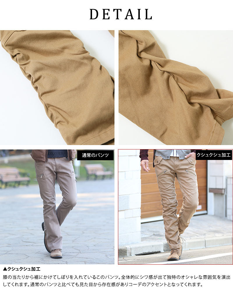 【クシュクシュ加工がコーデにアクセントを加えてくれる!!】ジップデザインクシュクシュ加工スキニ―パンツ
