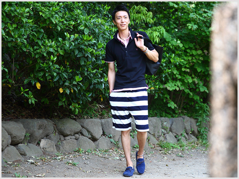 ポロシャツ特有の男らしさにボーダーで着崩す。