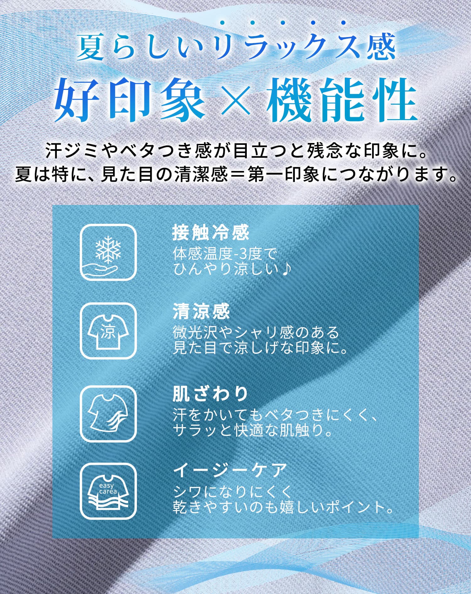 Tシャツは高級感のあるカルゼ織りに加え接触冷感になっているので、