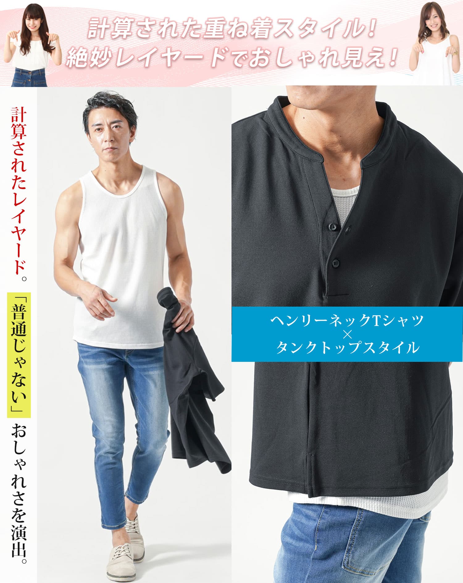 接触冷感オーバーサイズ半袖ヘンリーネックTシャツ×ワッフルタンクトップ 2枚セット 接触冷感オーバーサイズ半袖ヘンリーネックTシャツ×ワッフルタンクトップ 2枚セット 接触冷感オーバーサイズ半袖ヘンリーネックTシャツ×ワッフルタンクトップ 2枚セット 接触冷感オーバーサイズ半袖ヘンリーネックTシャツ×ワッフルタンクトップ 2枚セット