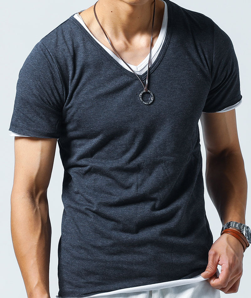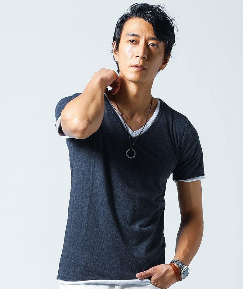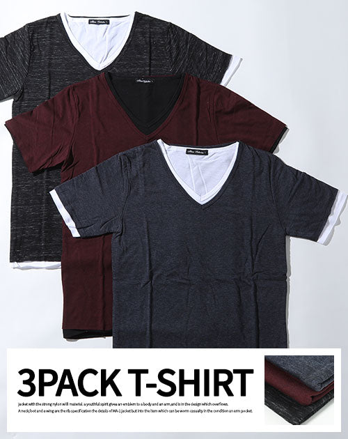 レイヤードデザイン半袖ⅤネックTシャツ 3枚セット