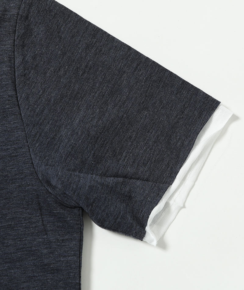 オシャレなレイヤードTシャツの3枚セットになります。生地を2枚使い、重ね着オシャレが楽しめるTシャツとなっております。表地は上品な杢デザインなので、大人な雰囲気を作ってくれます。
