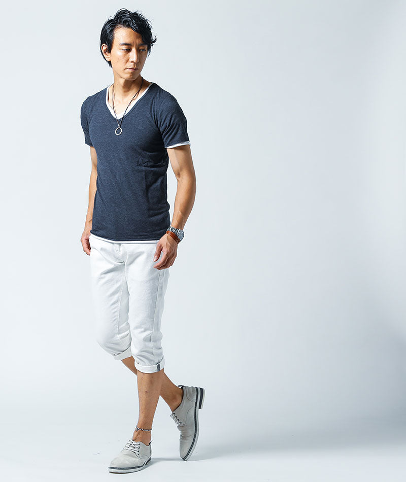 スリムな細身シルエットなので、スタイリッシュな夏コーディネートが完成します。程よい深さのⅤネックなのでスッキリとした印象にしてくれます。単品で買うよりも約7,000円お得なのでおすすめです。