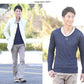 • スラブ地杢デザインライトVネックニットソー×温感加工Vネックカットソー 2点セット