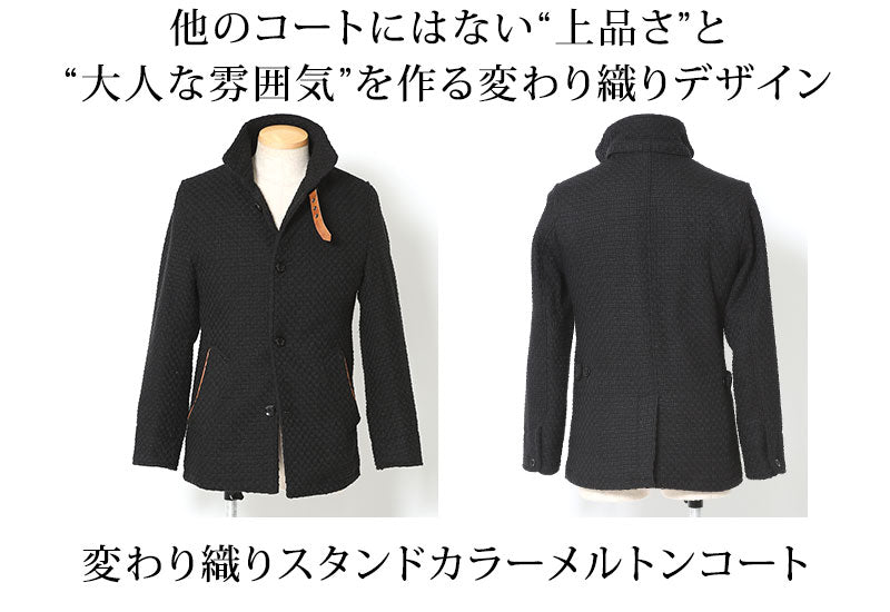 変わり織りスタンドカラーメルトンコート