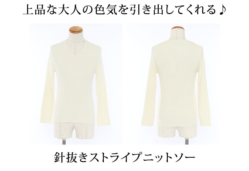 針抜きストライプニットソー