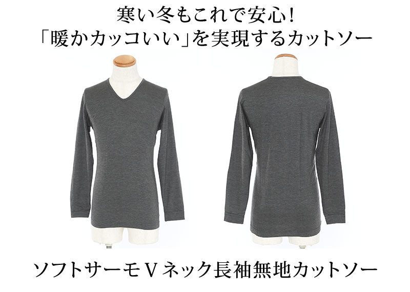 ソフトサーモVネック長袖無地カットソー