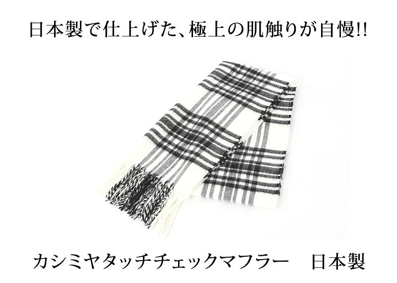 カシミヤタッチチェックマフラー 日本製