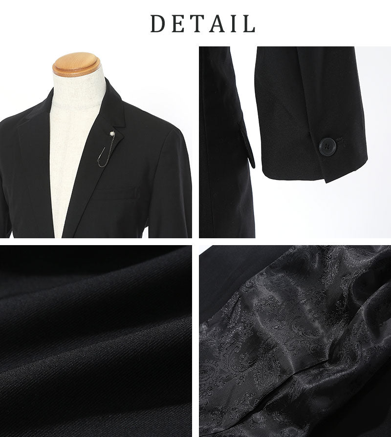 ラペルチェーン付き裏地ぺイズリー7分袖テーラードジャケット