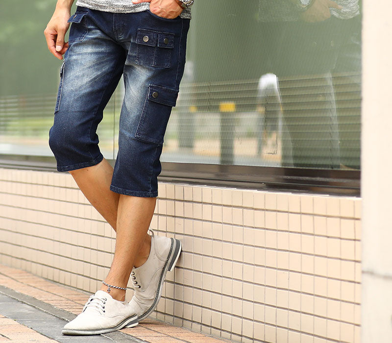 ポケットデザインカーゴデニムクロップドパンツ
