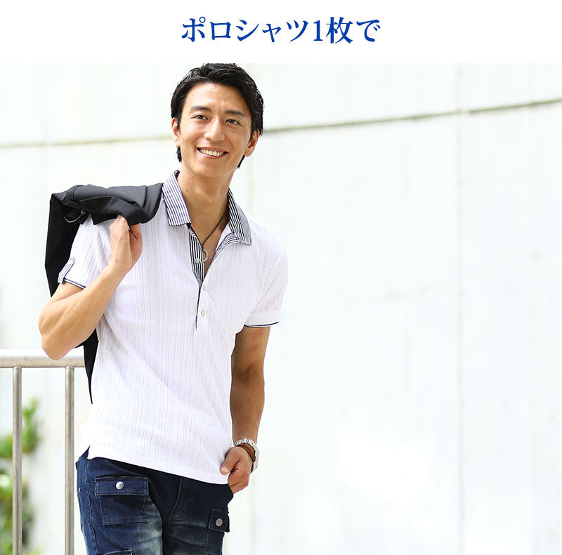 襟があるポロシャツはしっかり感が出るので好印象を作り上げてくれます! さらには、袖・前立て・襟まわりにストライプデザインを入れる事で上品な印象に。 1枚で着ていてもオシャレですが、インナーとして着用した時にコーディネートをギュッと引き締めてくれるのでスマートな着こなしを演出してくれます。
