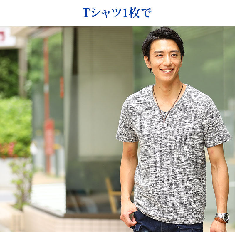 杢スラブ地㈸ネック半袖Tシャツ