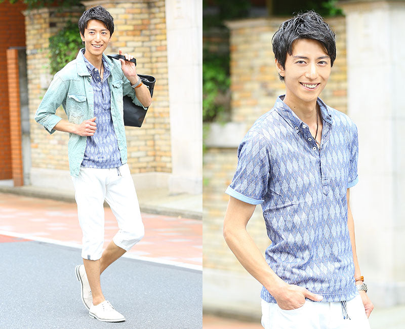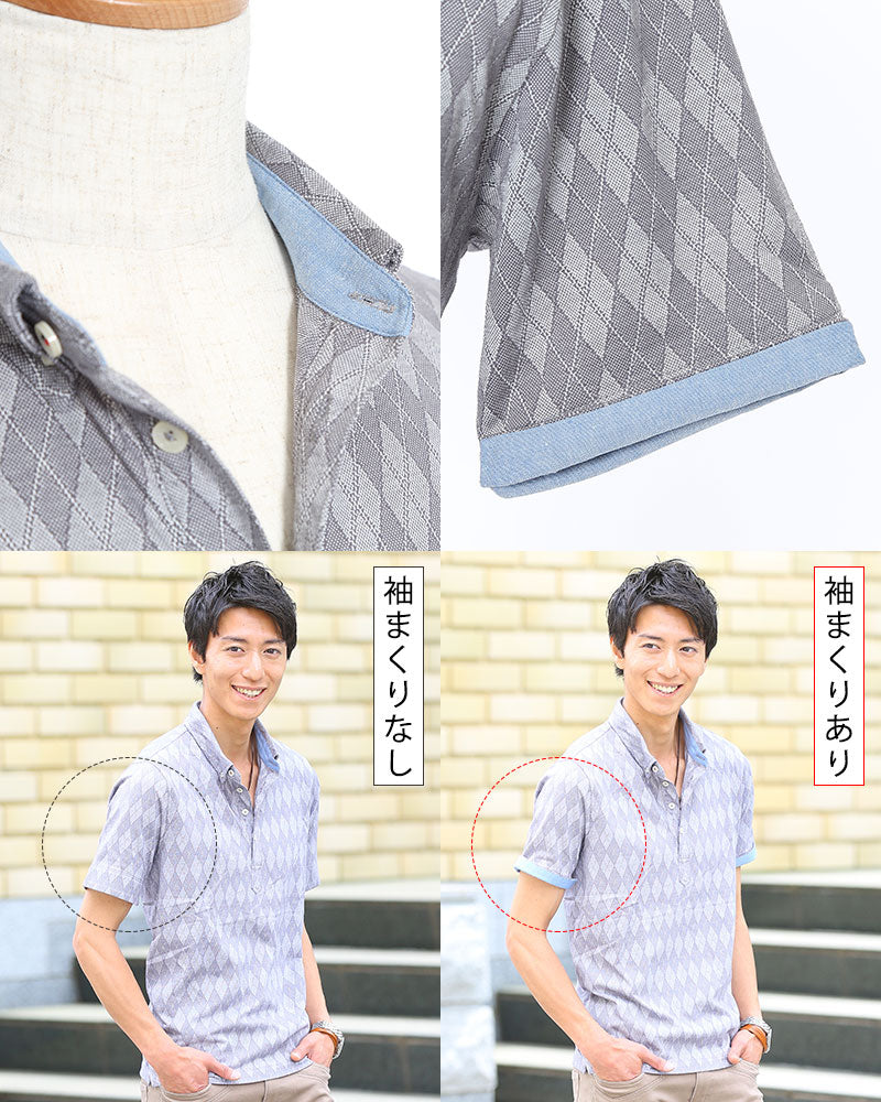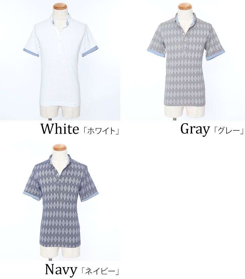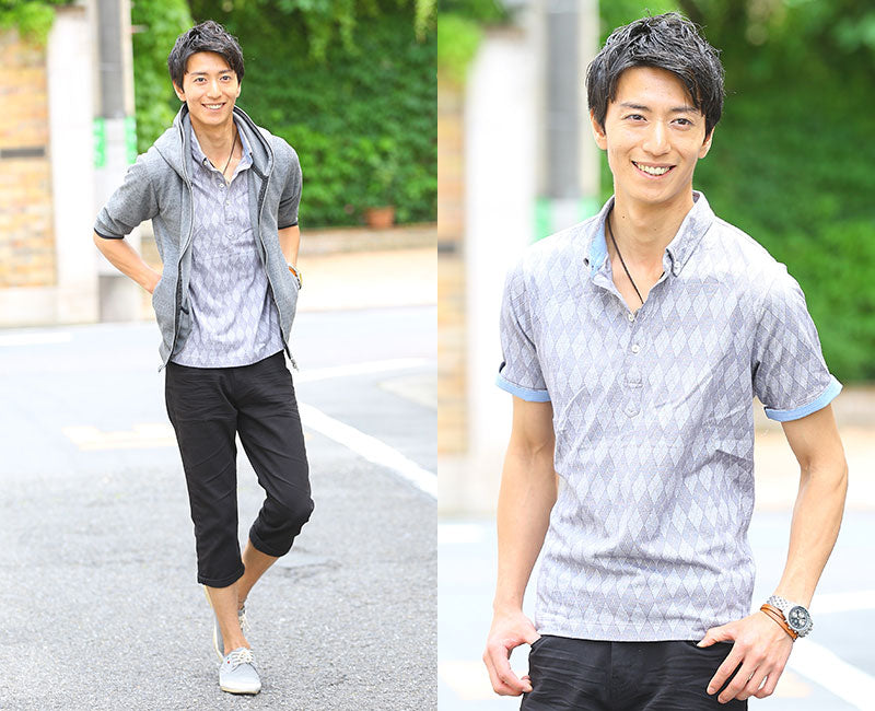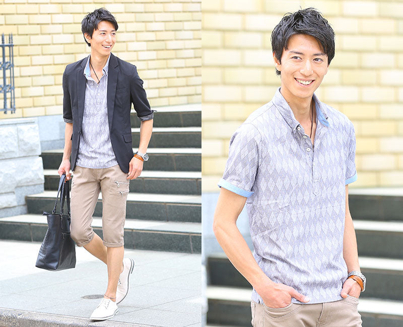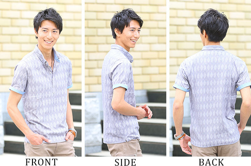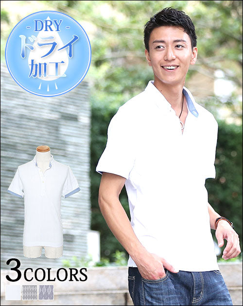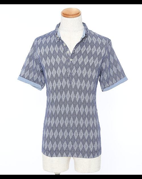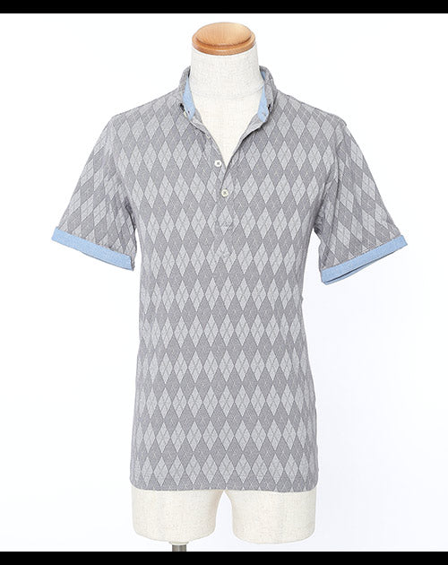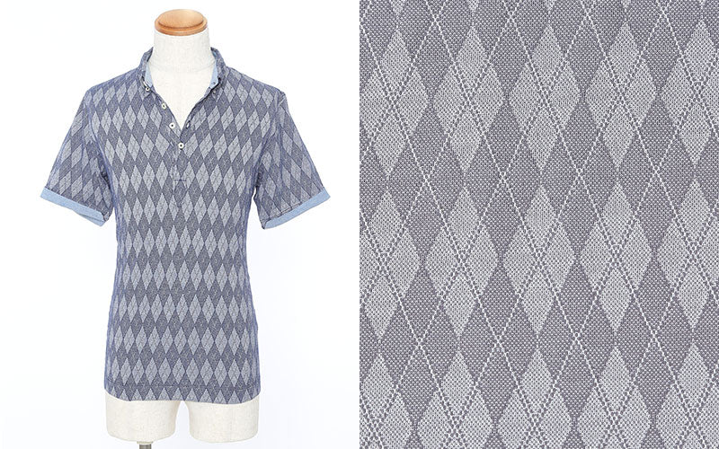 【夏のオシャレはさりげないデザイン魅せを涼しげにアピール♪】ドライ加工アーガイルデザインポロシャツ