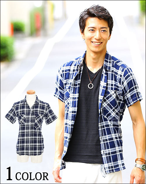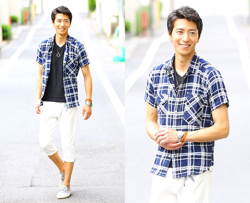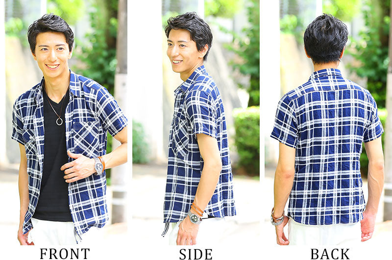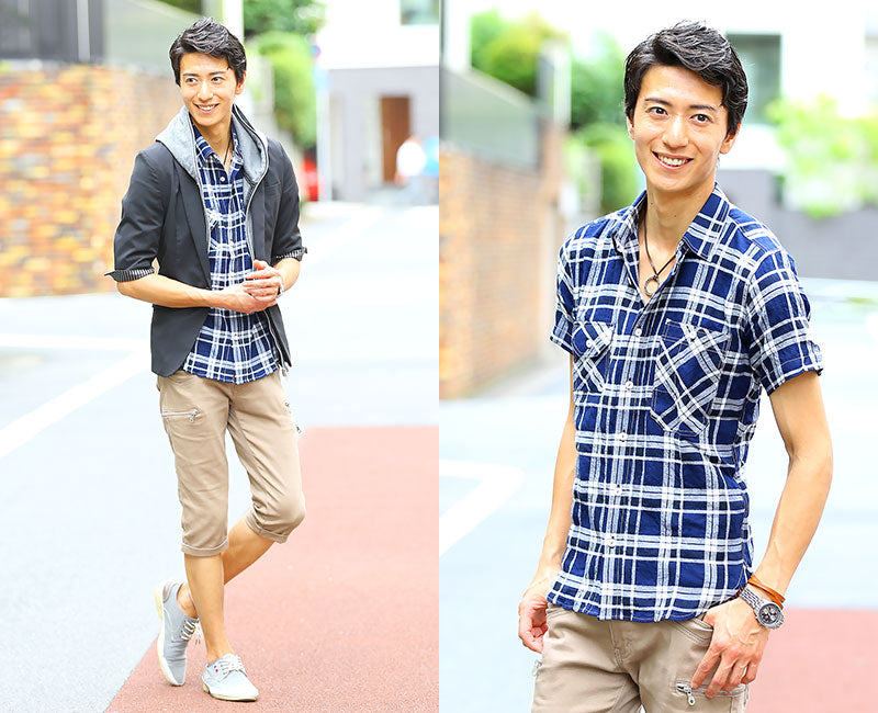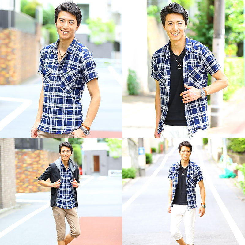 夏らしく爽やかなチェックデザインに仕上げました! ネイビー×ホワイトでマリンテイストを出しつつ、チェックデザインでオシャレ感漂う雰囲気に。 大人っぽさと爽やかさを兼ね備えたシャツ!!