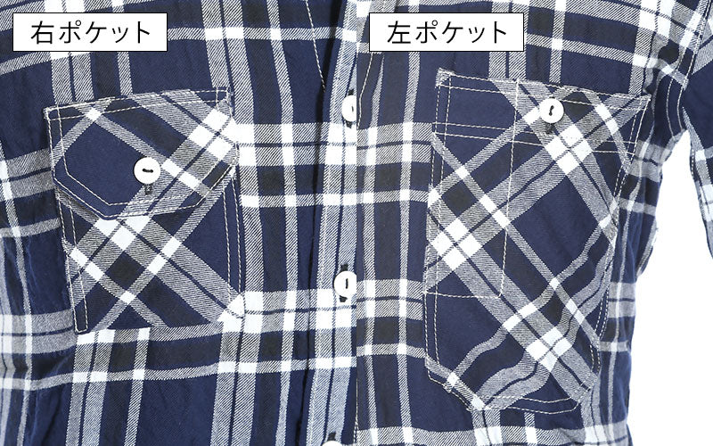 胸ポケットは左右非対称に作りあげました! オシャレには欠かせないチェックシャツなので、目立ちはしないけどさりげないこだわりを感じさせてくれるんです! なので王道アイテムながらも、周りとは一味違ったチェックシャツなんです!!